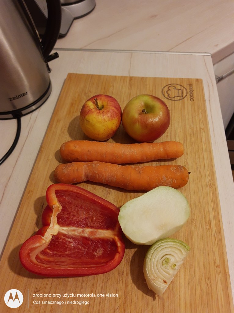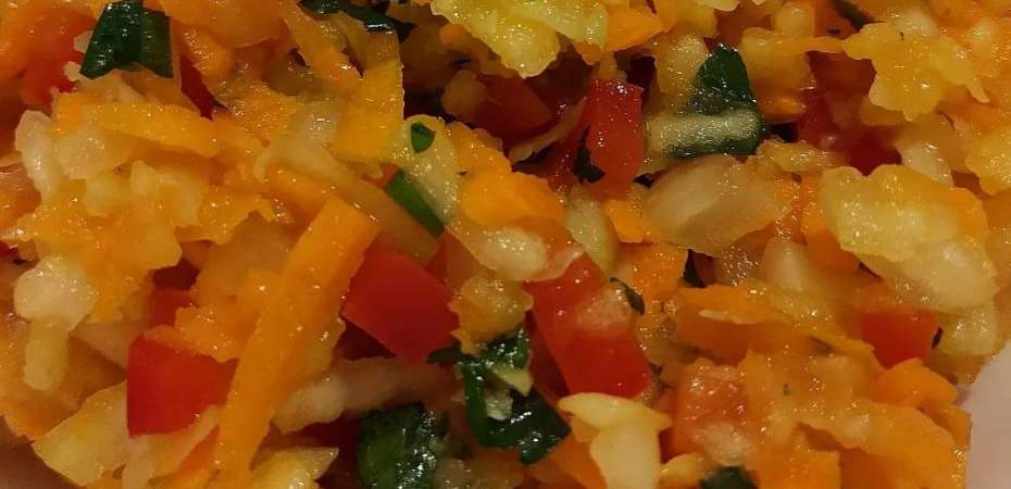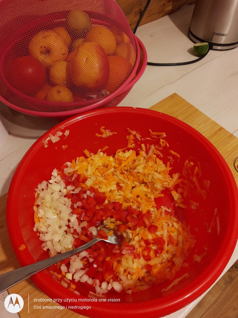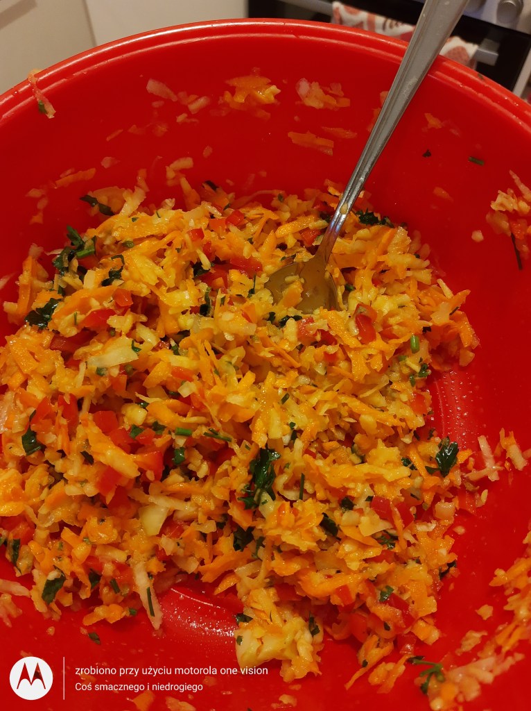 Cześć, dziś mój obiad wzbogaciła kolorowa surówka na bazie: marchwi, jabłek, kalarepy z dodatkiem czerwonej papryki, cebuli i natki pietruszki. Co smakowitego przygotowaliście?