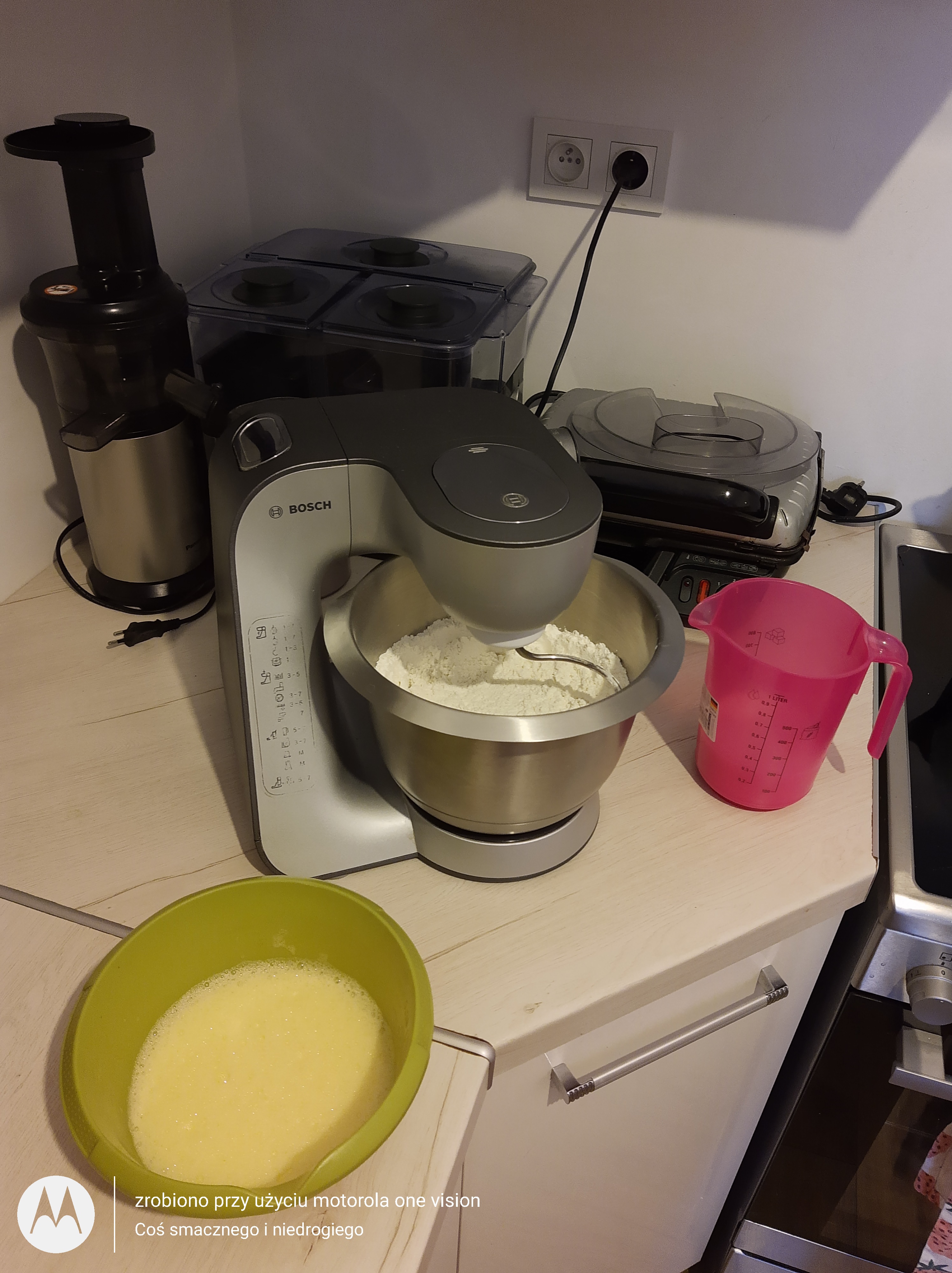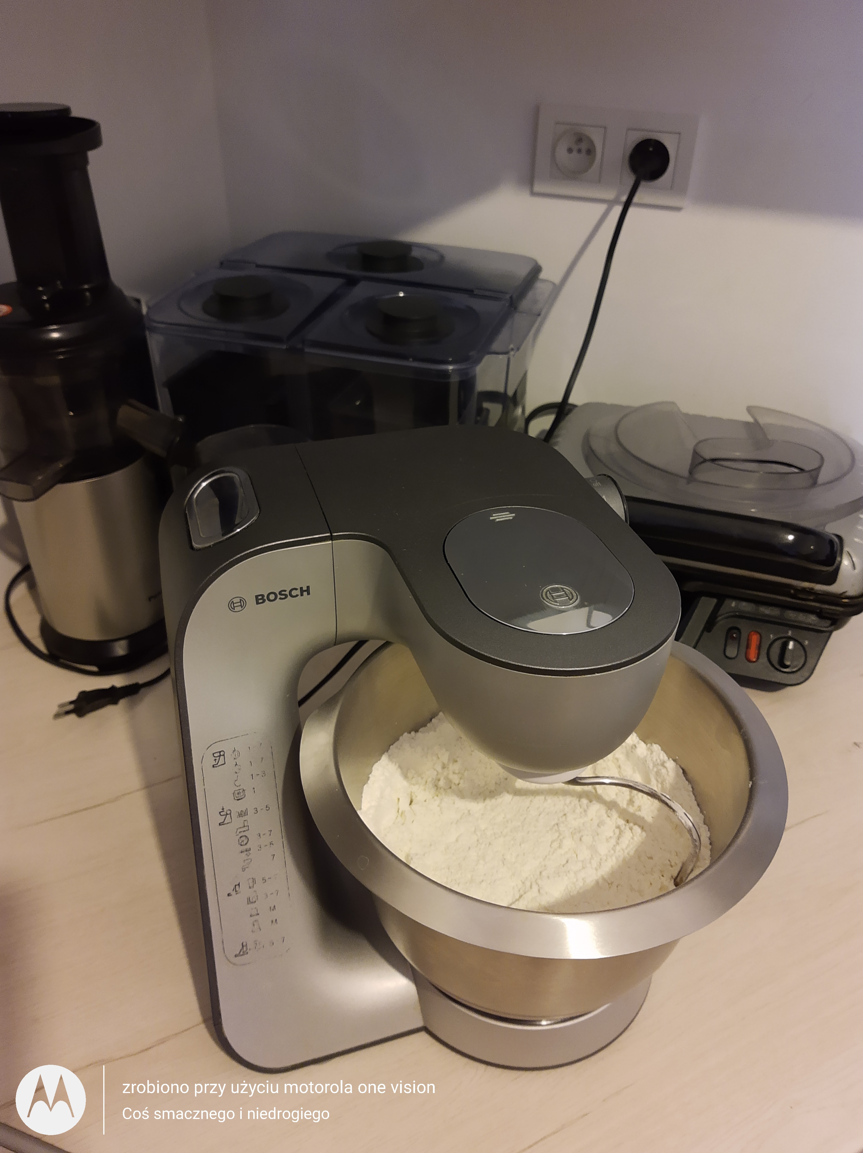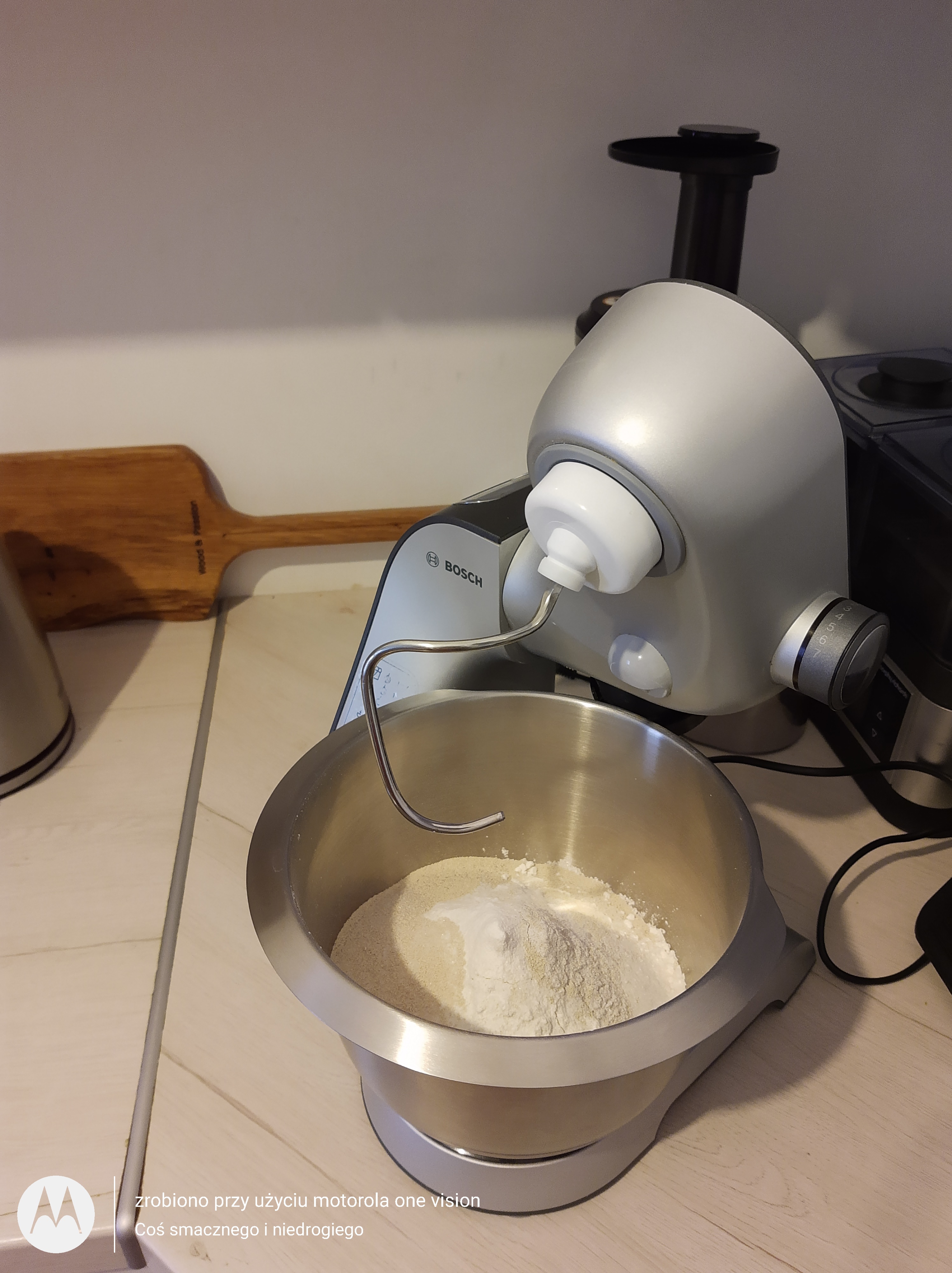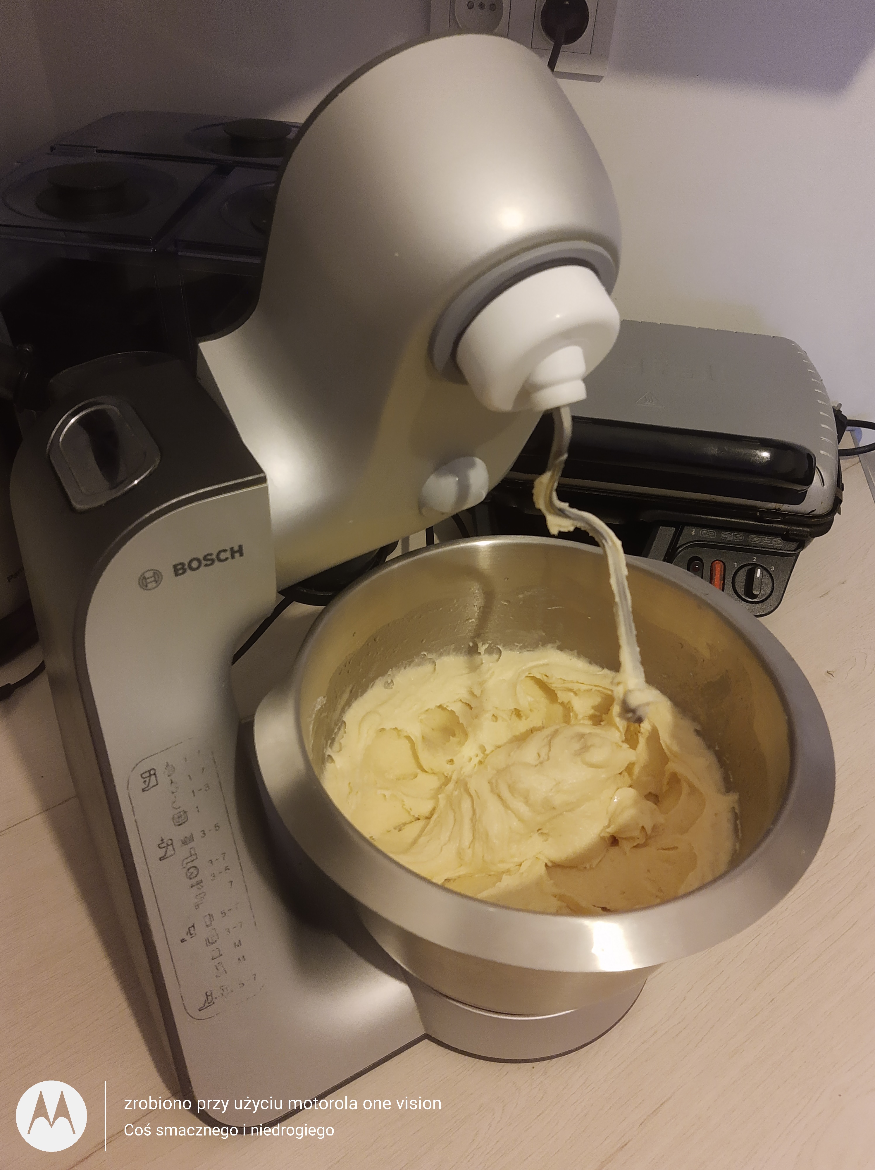Do misy robota kuchennego wsypuję wszystkie suche składniki i zaraz potem uruchamiam sprzęt aż do momentu kiedy nastąpi ich połączenie.