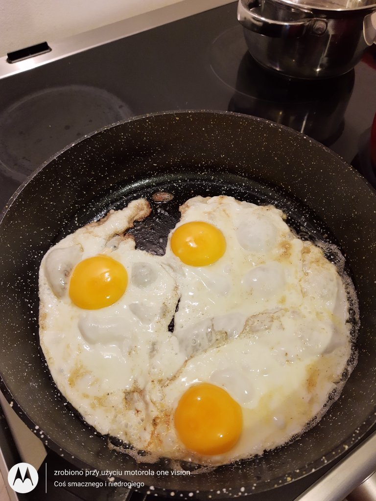 Następnie dokładam masło, wbijam jajka i smażę przez chwilę.