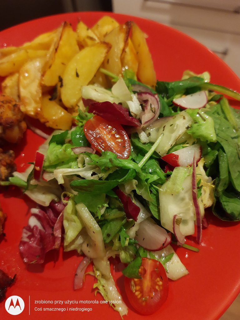 Cześć, nie macie pomysłu na pyszną sałatkę? Zatem ta jest właśnie dla Was! Zapraszam na kolorowy oraz zdrowy dodatek na bazie miksu sałat, szpinaku, ogórków, pomidorków i rzodkiewek z sosem miodowym, który urozmaici niejeden obiad 😋