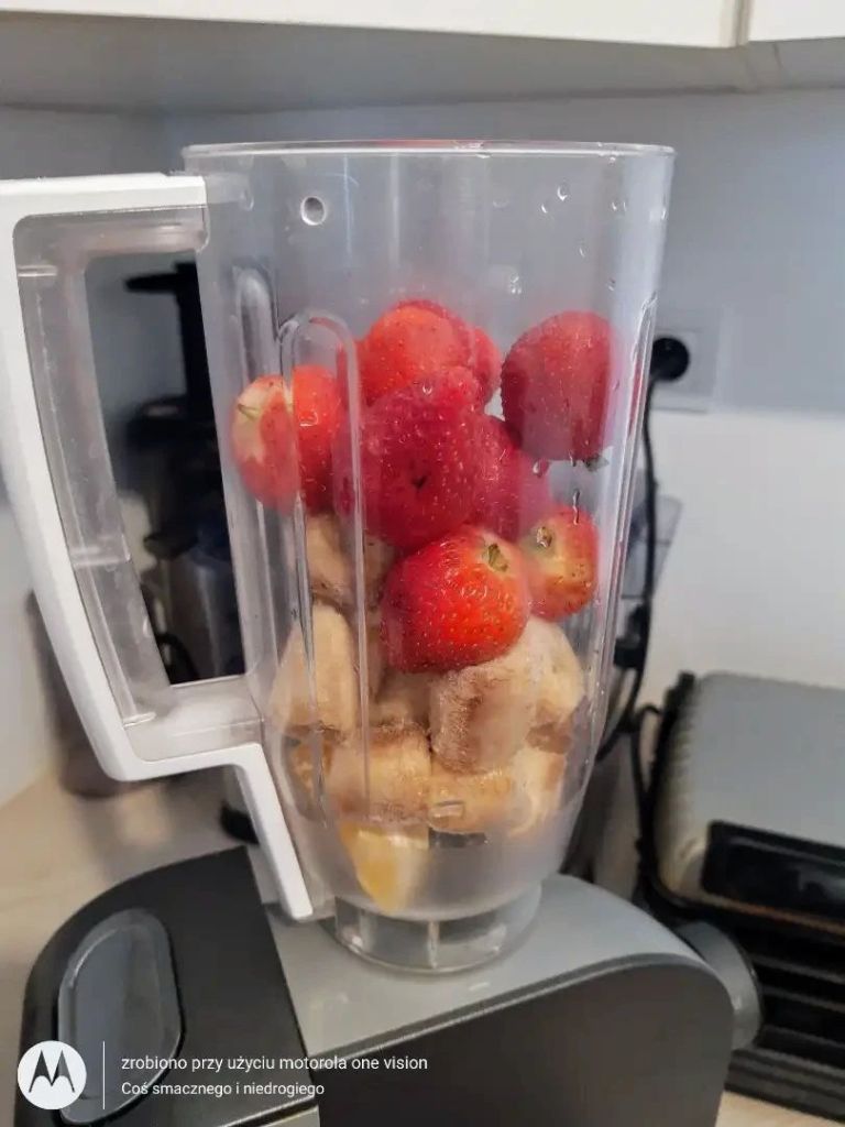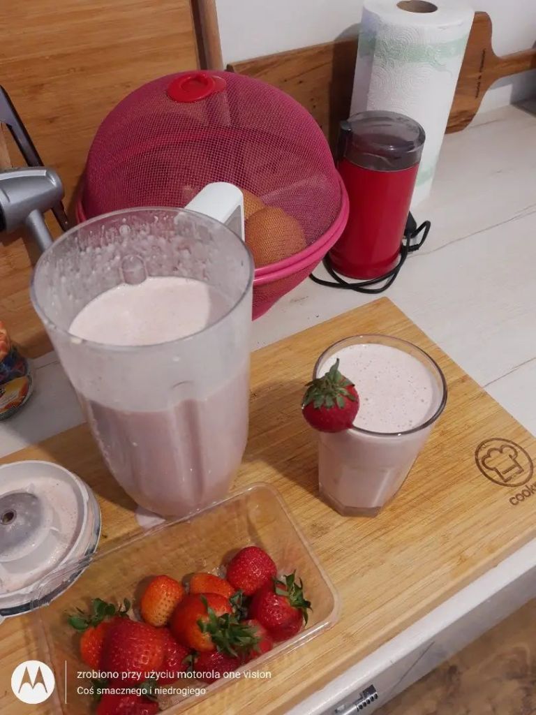 Dzień Dobry, co słychać? W sobotni poranek skusiłam się na przygotowanie smoothie pełnego truskawek oraz bananów. Zatem życzę Wam przyjemnego dnia 🙂❤️😘