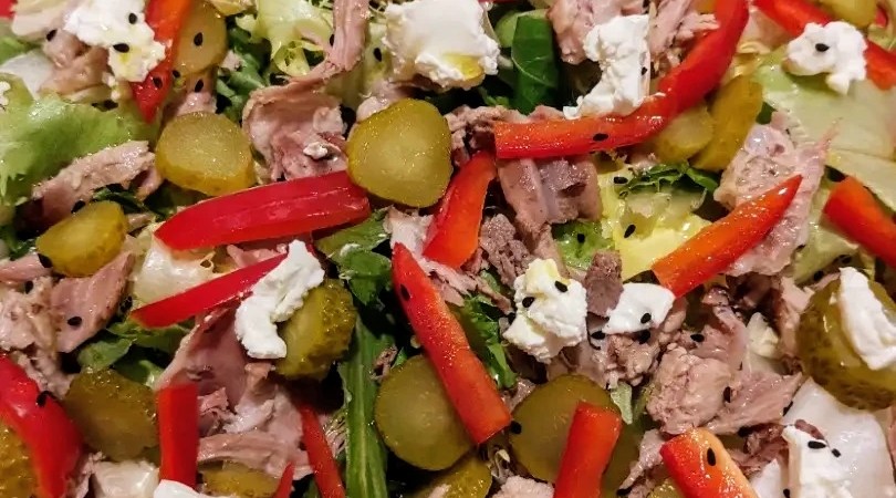 Witam, latem zamiast tradycyjnych kanapek podaję proste w przygotowaniu sałatki. Dzisiaj wykorzystałam: kaczkę, paprykę oraz ser feta bez laktozy. Natomiast co Wy polecacie na kolację?