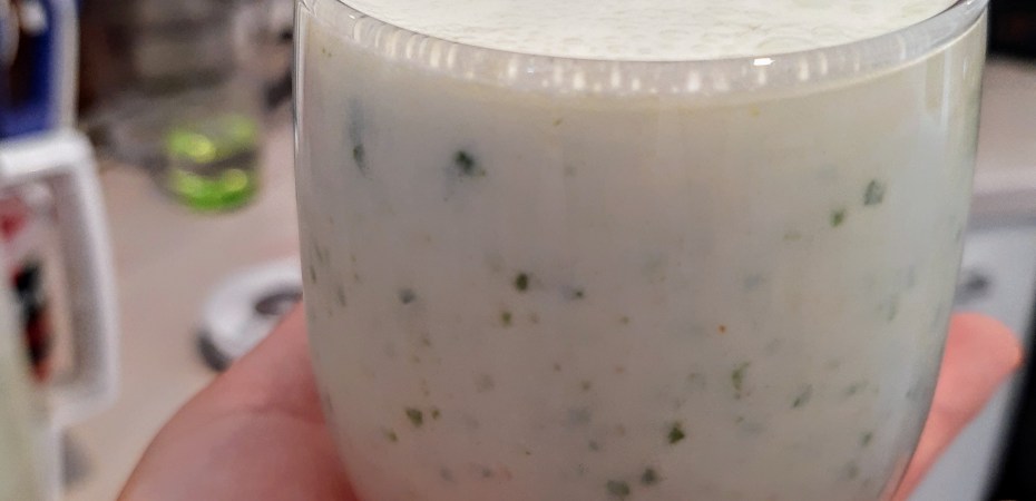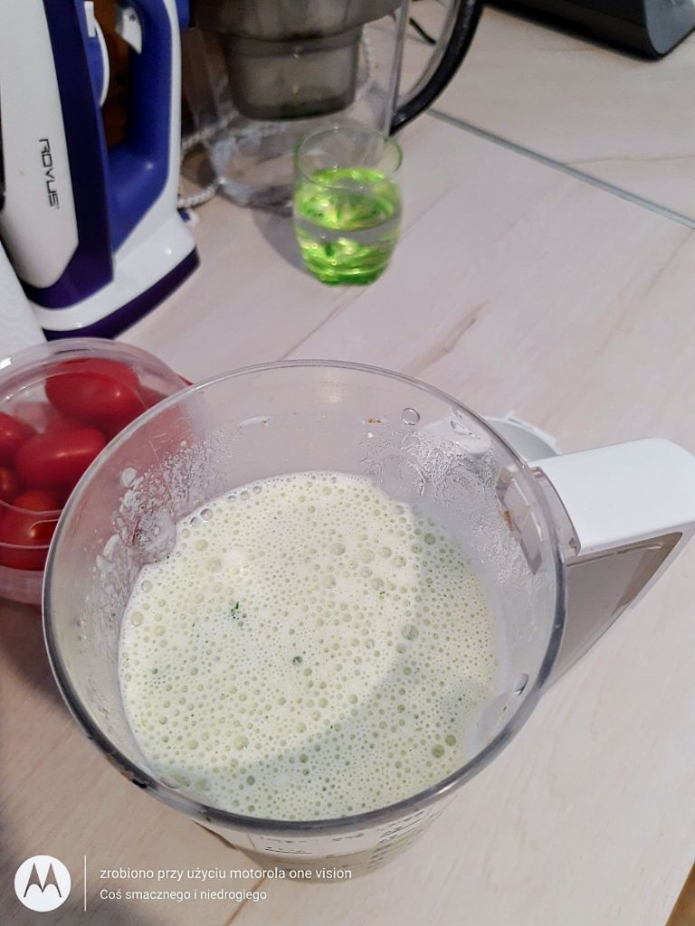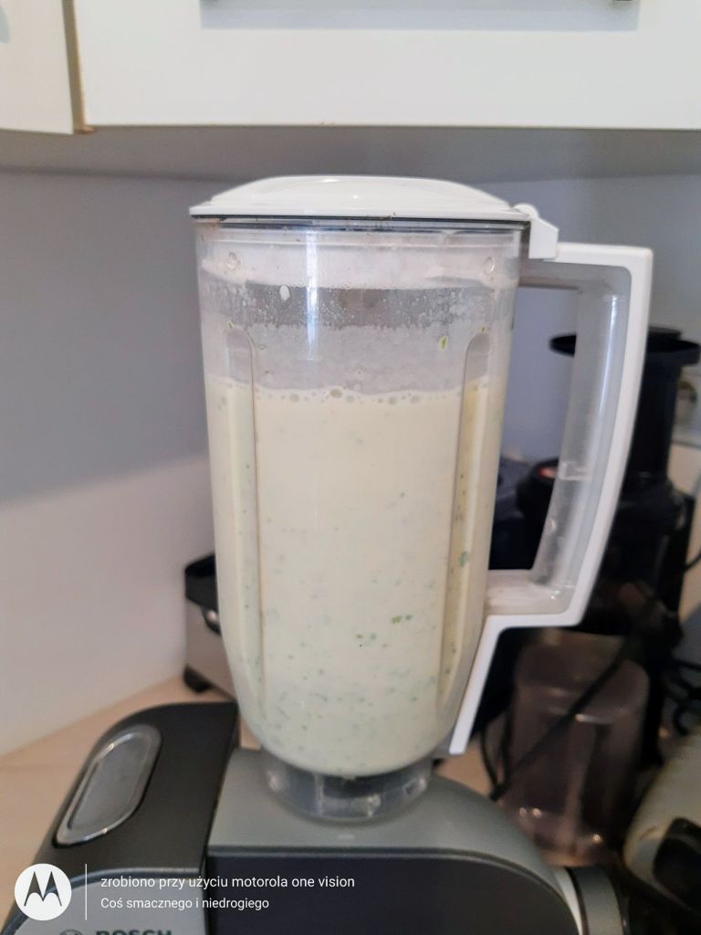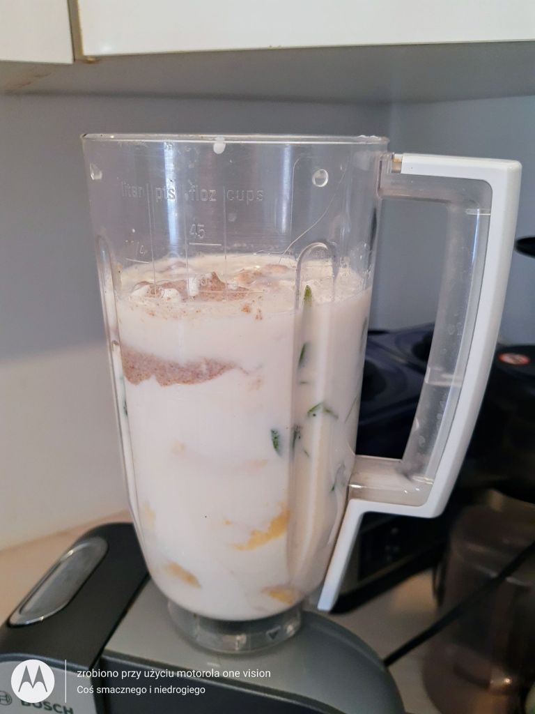 Koktajl blenduję na jednolitą masę oraz podaję po schłodzeniu.