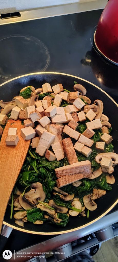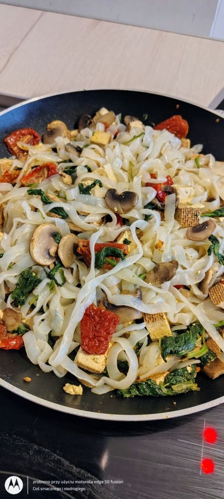 Cześć, jak się macie? Na sycący posiłek przygotowałam szybki makaron konjac z pieczarkami, pomidorami, szpinakiem oraz tofu. A Wy co upichciliście? Mocno ściskam i pozdrawiam 🙂 ❤️