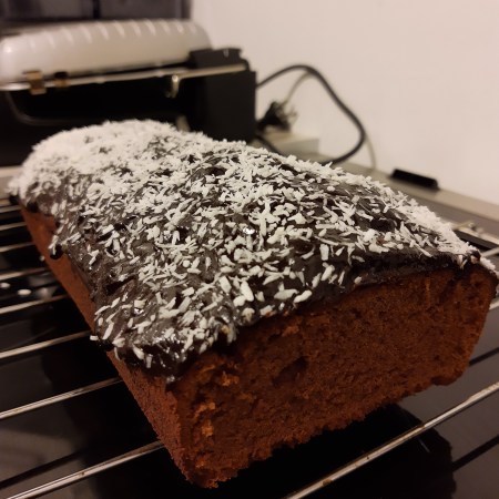 ,,Ciasto murzynek z polewą karobową i wiórkami kokosowymi,,
