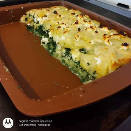 ,,Zapiekanka ziemniaczana ze szpinakiem oraz fetą,,