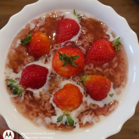 ,,Deser z tapioki z musem brzoskwiniowym oraz z mrożonych truskawek,,